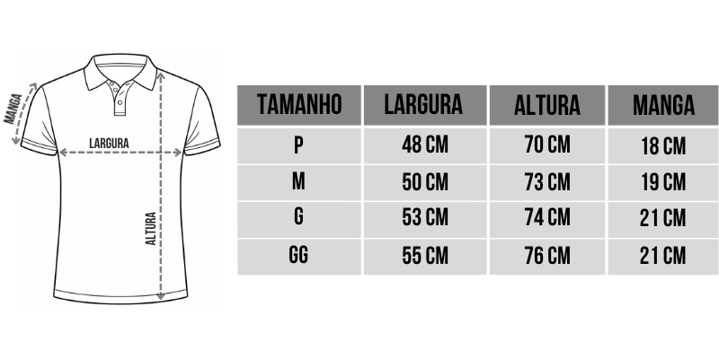 Disponível do tamanho P ao GG em diversas cores, é uma polo versátil, moderna e ideal para compor produções elegantes em qualquer ocasião.