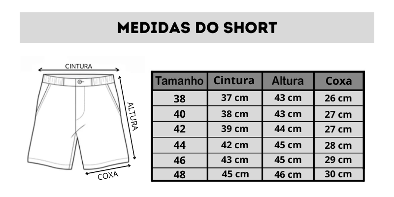 Observação: Os tamanhos podem sofrer variações mínimas devido ao processo de confecção.